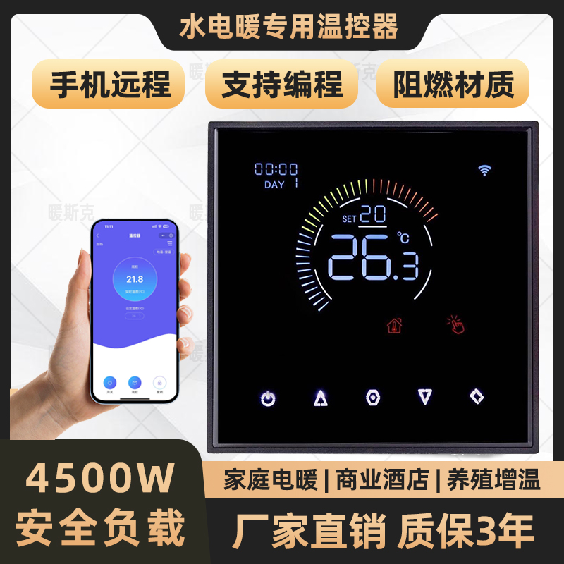 KZQ-699大屏窄邊設(shè)計(jì)、美觀大方、柔光背燈、屏顯布局上更為豐富,家裝首選??稍O(shè)置分時(shí)段控溫,操作流暢簡潔,通俗易懂。具有內(nèi)置低溫防凍功能(出廠默認(rèn)關(guān)閉)、反向轉(zhuǎn)換功能、掉電時(shí)鐘保持功能以及連續(xù)加熱保護(hù)(出廠默認(rèn)關(guān)閉)和過熱保護(hù)功能等,也可外接感溫探頭實(shí)現(xiàn)“雙溫雙控”或“地溫”模式。